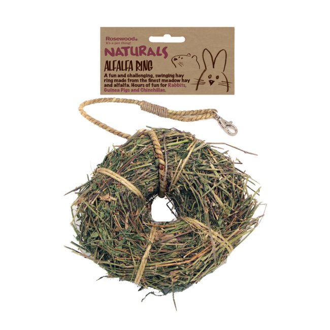 The Naturals Alfalfa Ring provides stimulating fun for small animals. It is a healthy treat containing wholesome ingredients normally found in your pet’s natural habitat. Much more than just a tasty dietary supplement, the Ring also gives your small furry hours of gnawing fun.