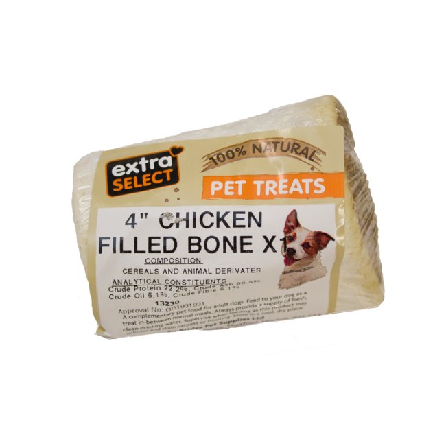 The Extra Select Chicken Filled Calcium Bone are low in fat and high in protein. They make for a tasty natural treat for your dog.